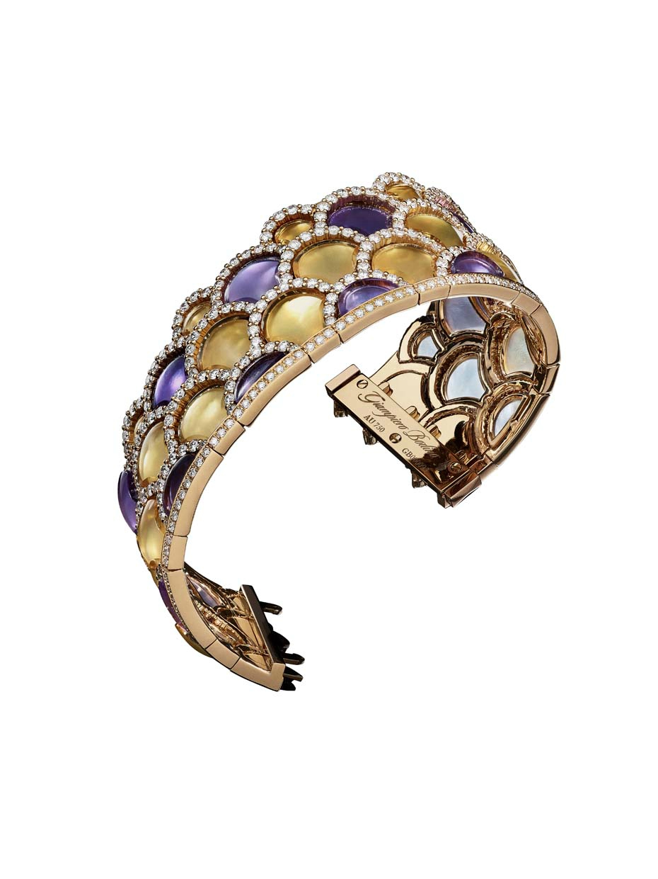 Bracelet Mosaïque en or et diamants serti de citrines et d’améthystes